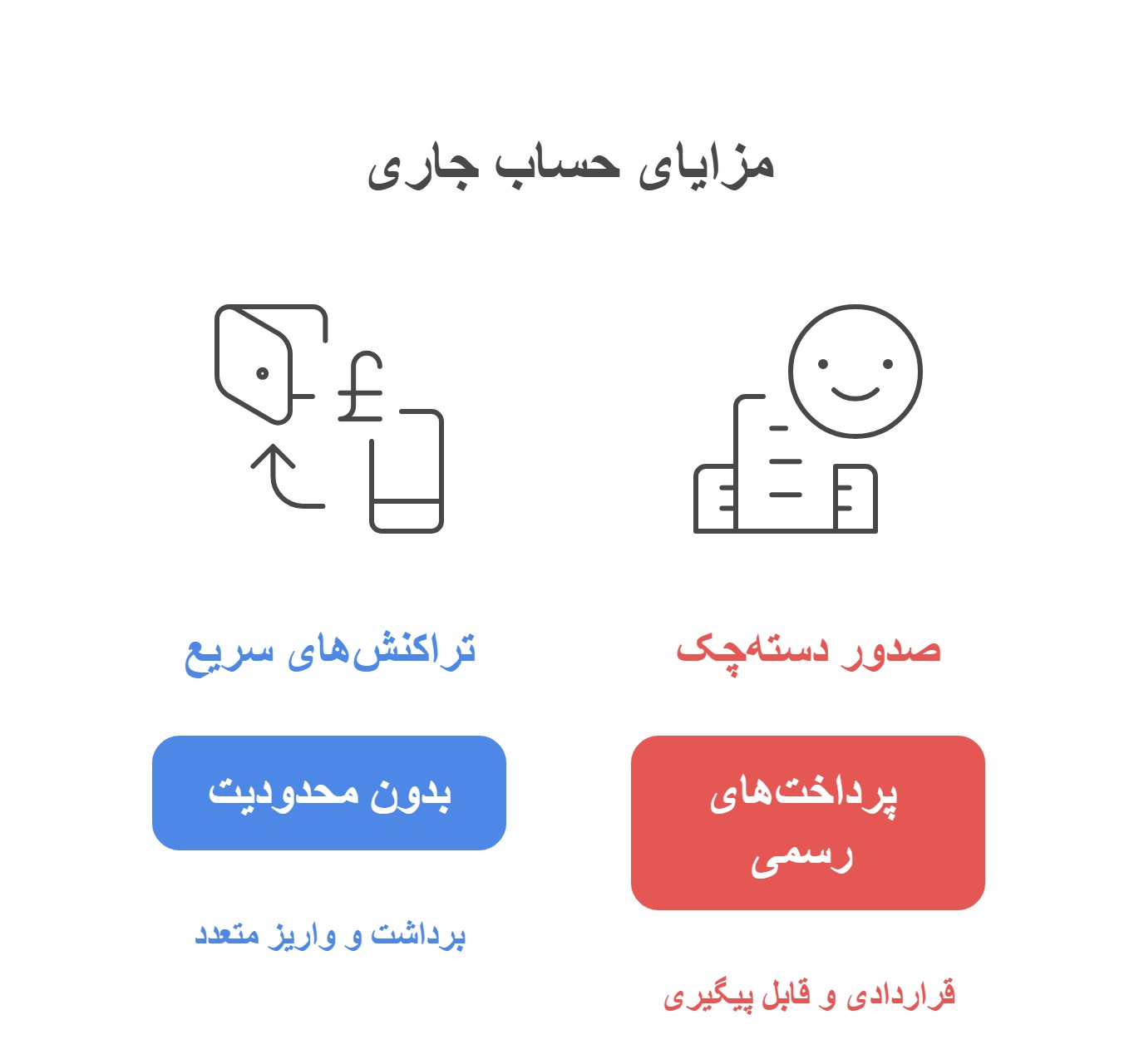 | چک | امکان صدور چک دارد | ندارد |